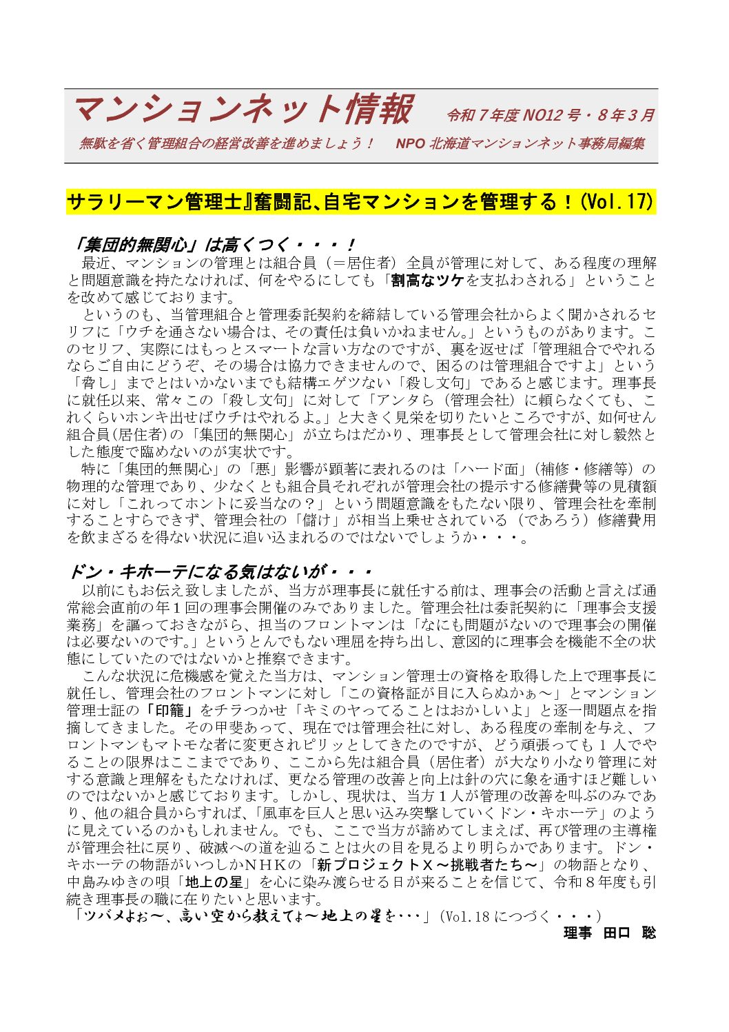 マンションネット情報 令和8年3月・No.12 発刊いたしました。 -
